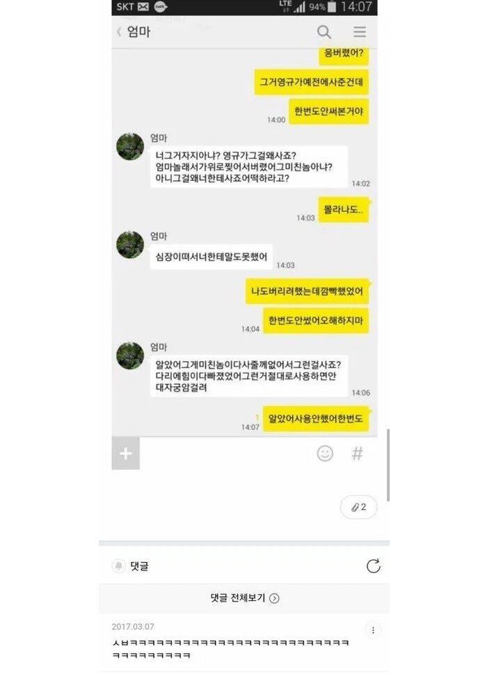 사는 것마다 엄마한테 다 걸림 ㅋㅋ