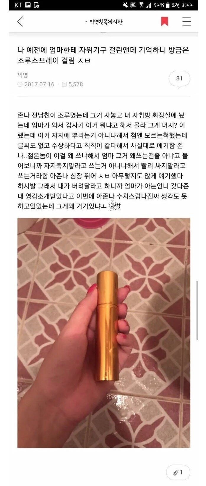 엄마 : "이거 ㅈㅈ에 뿌리는 거 아니냐?"
