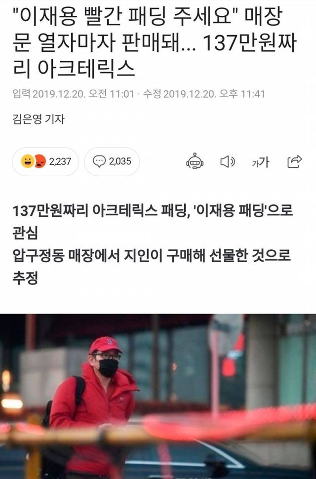 이재용 패딩으로도 유명한 아크테릭스 패딩