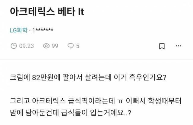 사고 싶은데 급식픽이라 망설여진다는 직장인